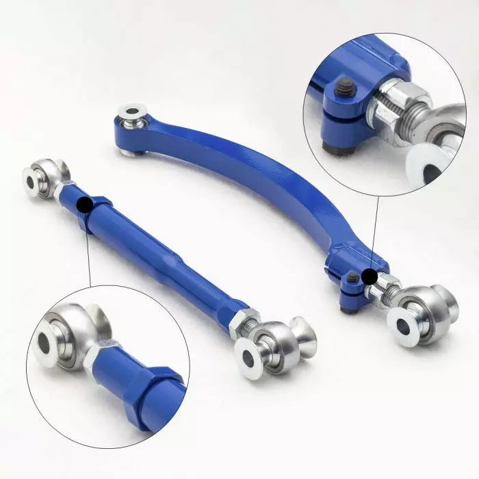 Our upgraded Nissan S-chassis rear suspension kit is designed with racing in mind. We have added some cool and unique features such as a new "compression" design toe arm, upgraded camber arm and reinforced knuckle.